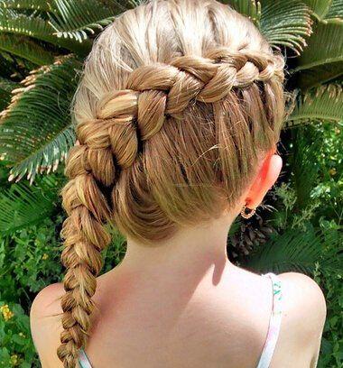 儿童梳头发发型,编发发型的辫子看上去还蛮有特点的,女童中分双编蜈蚣辫发型,从发顶上给头发梳成微微靠后的地方,编发发型刚好梳在脖颈的位置,编发发型要贴着头型搭配。