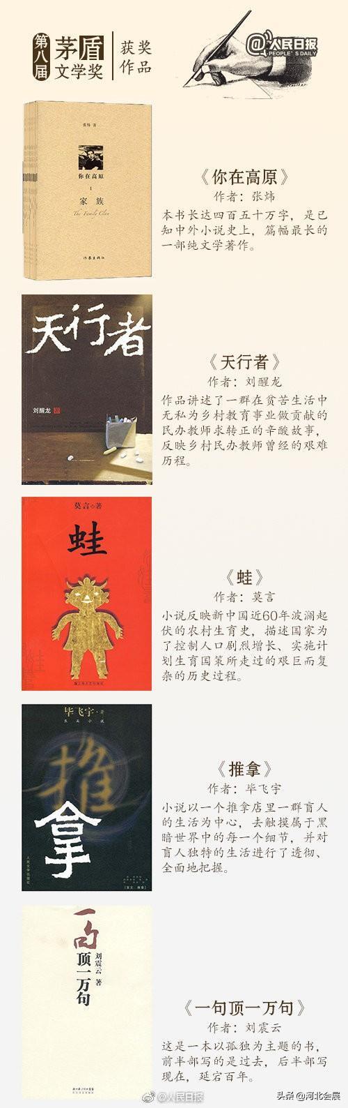 茅盾文学奖是长篇小说的最高奖项,茅盾文学奖每四年评选一次,经典众多,如《平凡的世界》《白鹿原》《推拿》等,重温历届获奖作品↓转存!总有一本让你受益匪浅。
