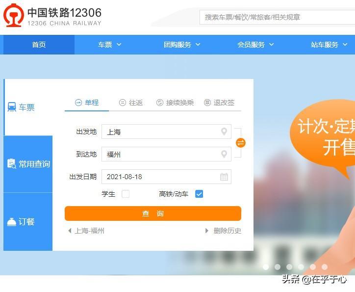 查询高铁当天车次,需要在12306的官方网站进行查看。一般查询当天车次,需要输入出发地、到达地,日期选择当日,这样查询比较快。具体方法如下: