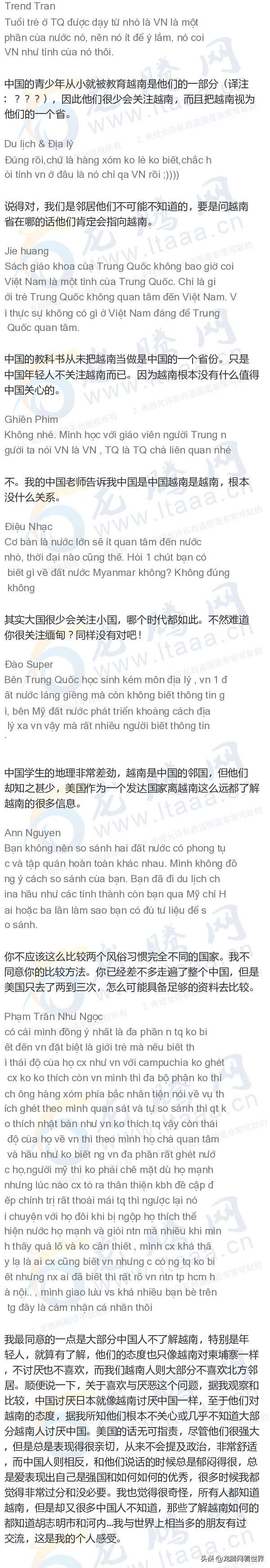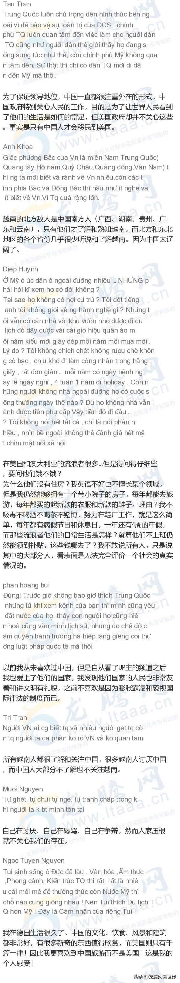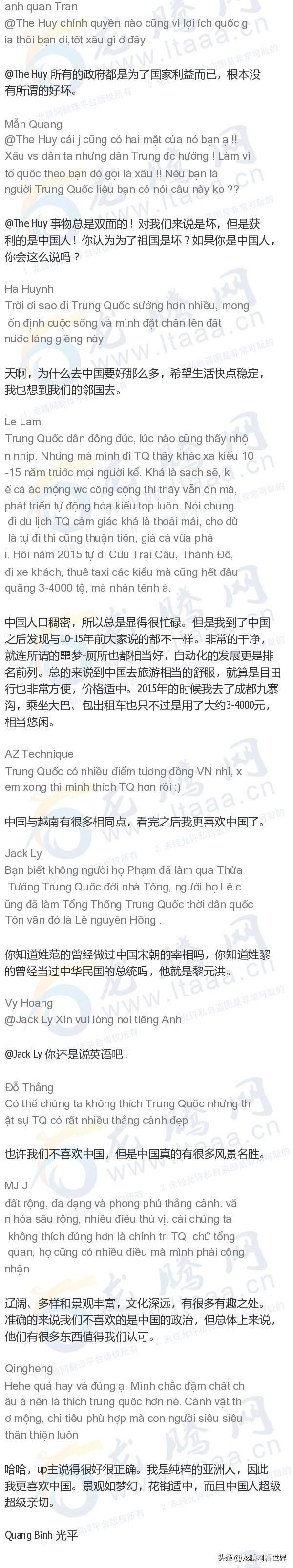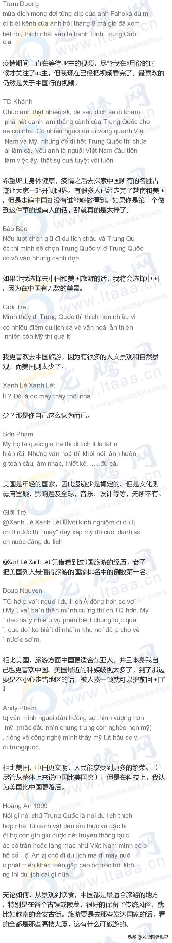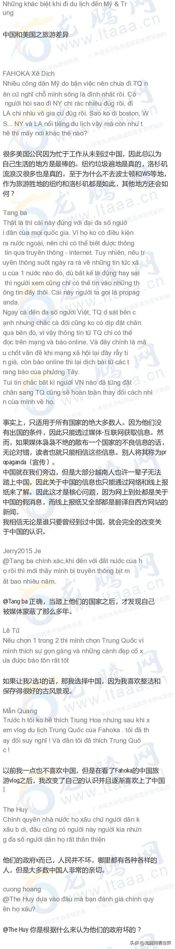 「龙腾网」越南网友:中国和美国之旅游差异