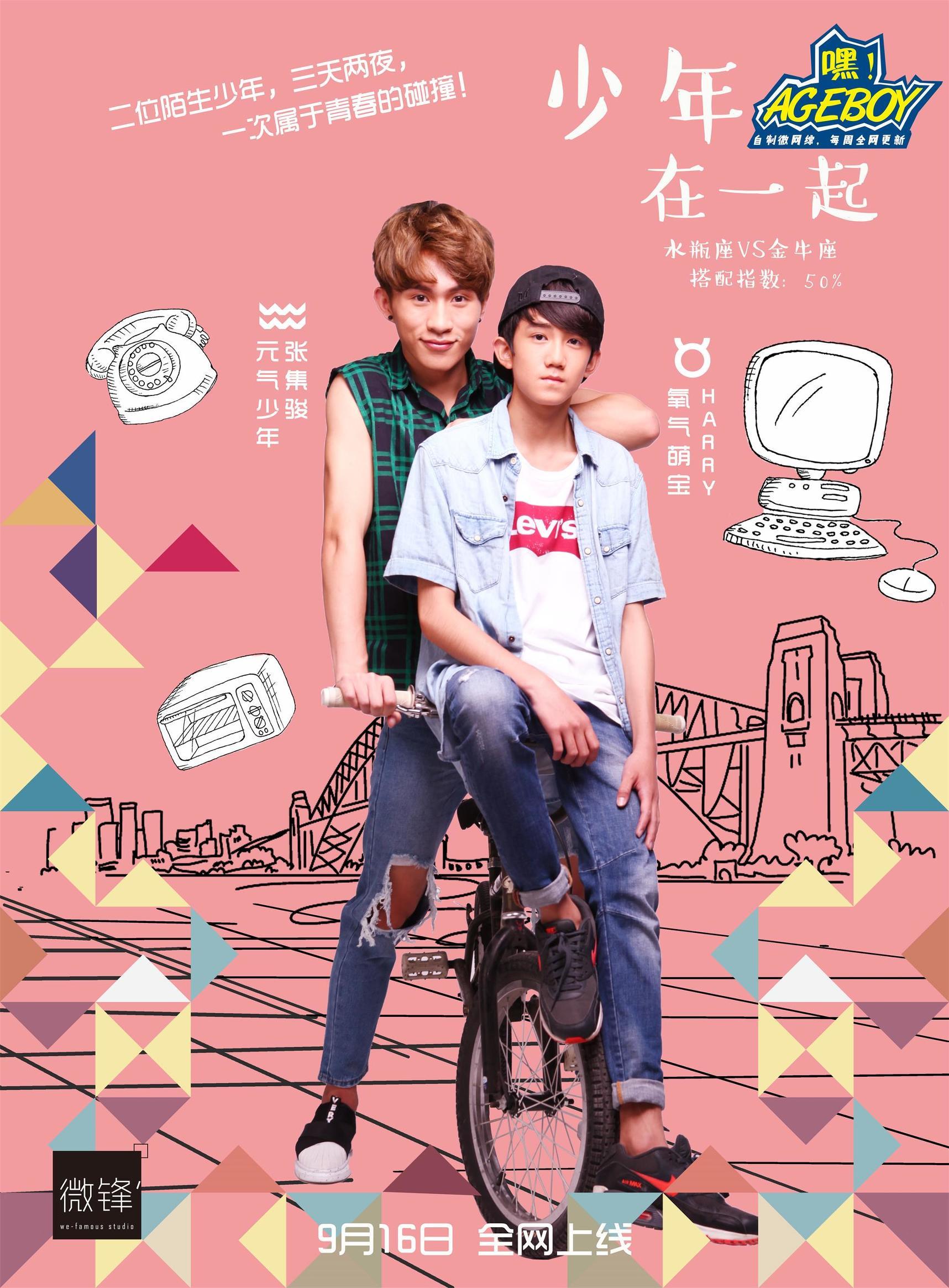 由AGEBOY主演的每周更新的微综艺《嘿!AGEBOY》适逢中秋小长假,正式推出全新的特别企划《少年在一起》微综艺系列。《少年在一起》的创意是延续于暑假推出的女生季系列,以AGEBOY和女生玩游戏为主题。而这次《少年在一起》则是由AGEBOY四位成员黄盛辉、张集骏、李炯凡、彭家钧及来自校园的两位大男生何德瑞、HARRY六个男生进行两两搭配,以真人秀+游戏的穿插方式进行三天两夜的共处,进行一次真实的90后、00后的交际方式全纪录。想要知道大男生之间的小秘密和小情绪?花样少年们会产生什么样的火花?那就密切关注9月16日上线的《嘿!AGEBOY》特别企划《少年在一起》!