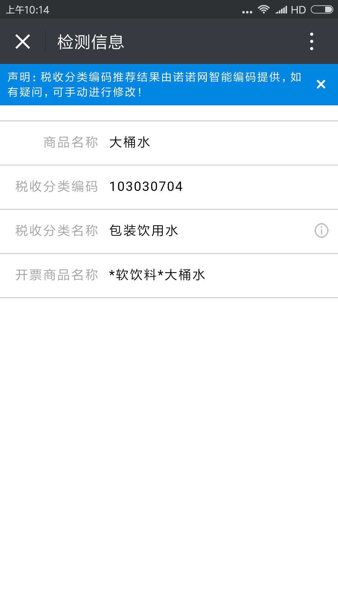 通过开票商品名称规范检测小程序,搜索商品的税收分类编码。