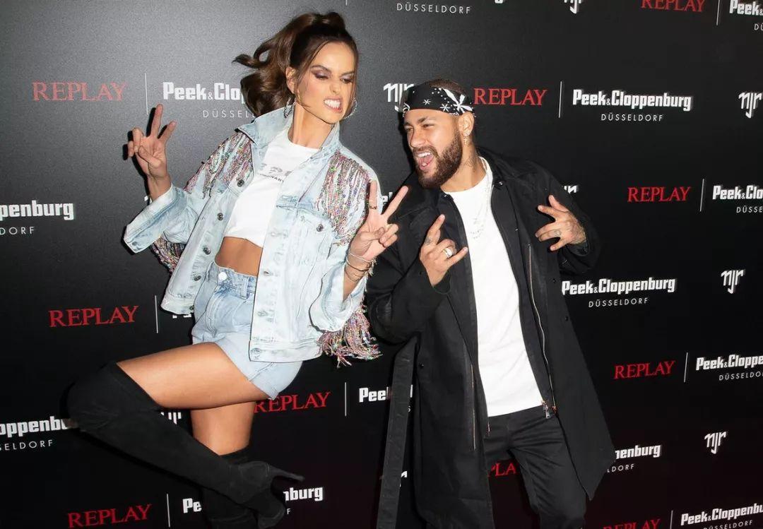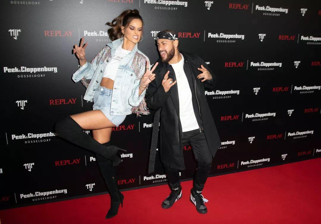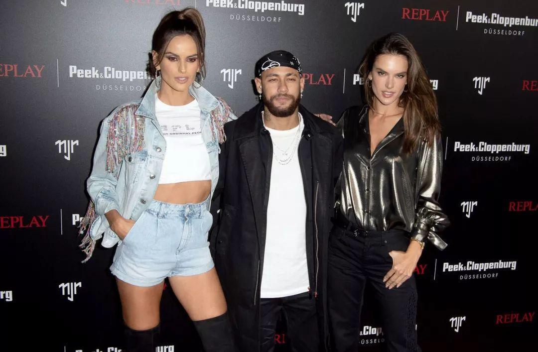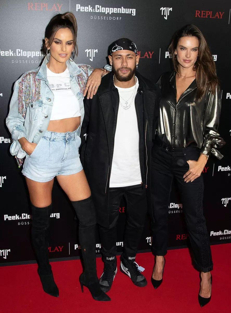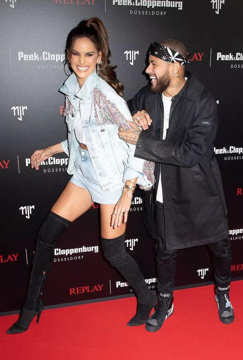 超模的大长腿高腰线与内马尔的身材形成了很大的反差,超模的高腰线让双腿显得更长,而内马尔的造型变成了小短腿。