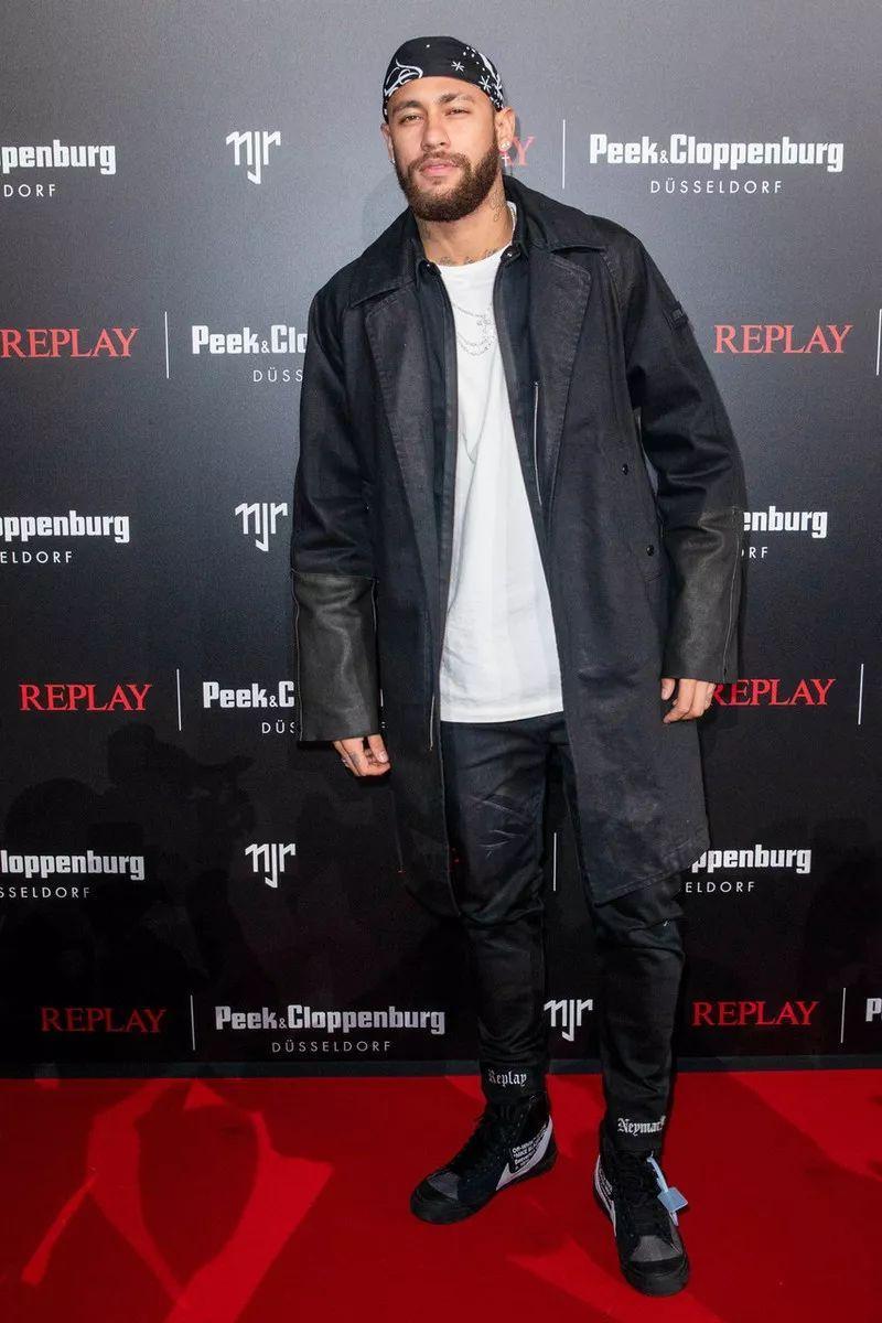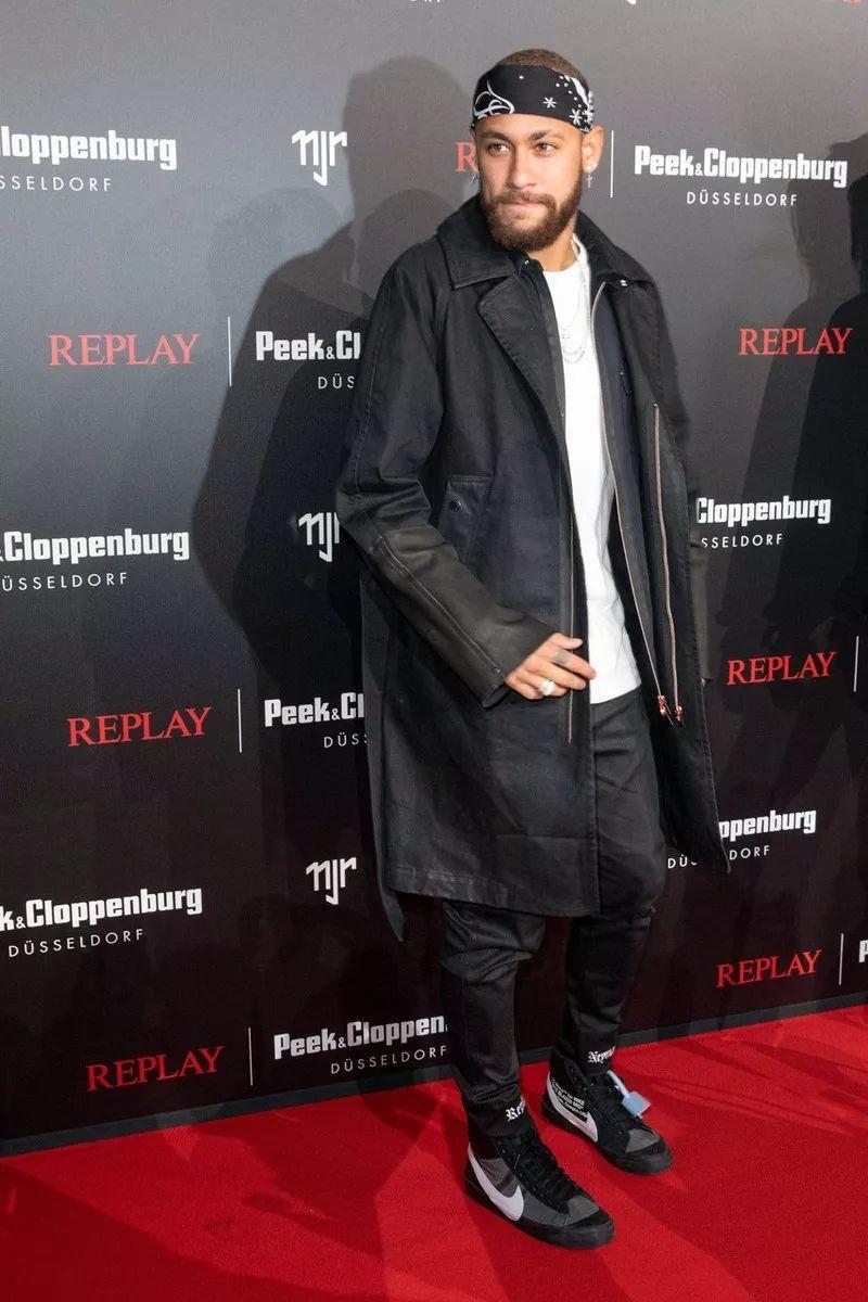 长款的大衣也显得很大气,大衣门襟的叠穿很有层次,加上大翻领的效果造型很丰富,但是气质稍微差一点都很难驾驭这个造型,就连175cm的内马尔都穿成了五五身。