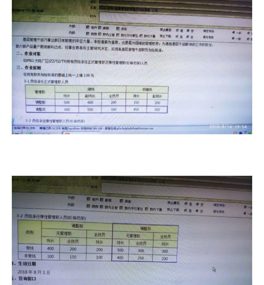 按照该邮件描述,该事业部涨薪的理由是:基层管理员工乃是事业群日常管理的中坚力量,承担着最为重要也是最为困难的管理职责,为激励基层员工的工作积极性,助力新产品量产爬坡顺利达成,经事业群高阶主管研究决定,拟提高基层管理干部职务加给标准。邮件显示该事业群为富士康iDPBG事业群,此次加薪的对象包括所有员级派任正式管理职及弹性管理职人员,主要为线长,副线长,全技员,班长,副班长等对象。