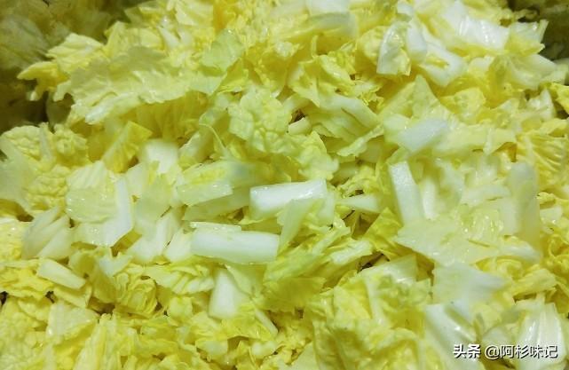 2,白菜清干净,控干水分,切成碎末。大白菜含有大量的水分,会出很多水。用食盐把白菜水分杀出来。把菜末放在干净的纱布中,包起来攥出水分。