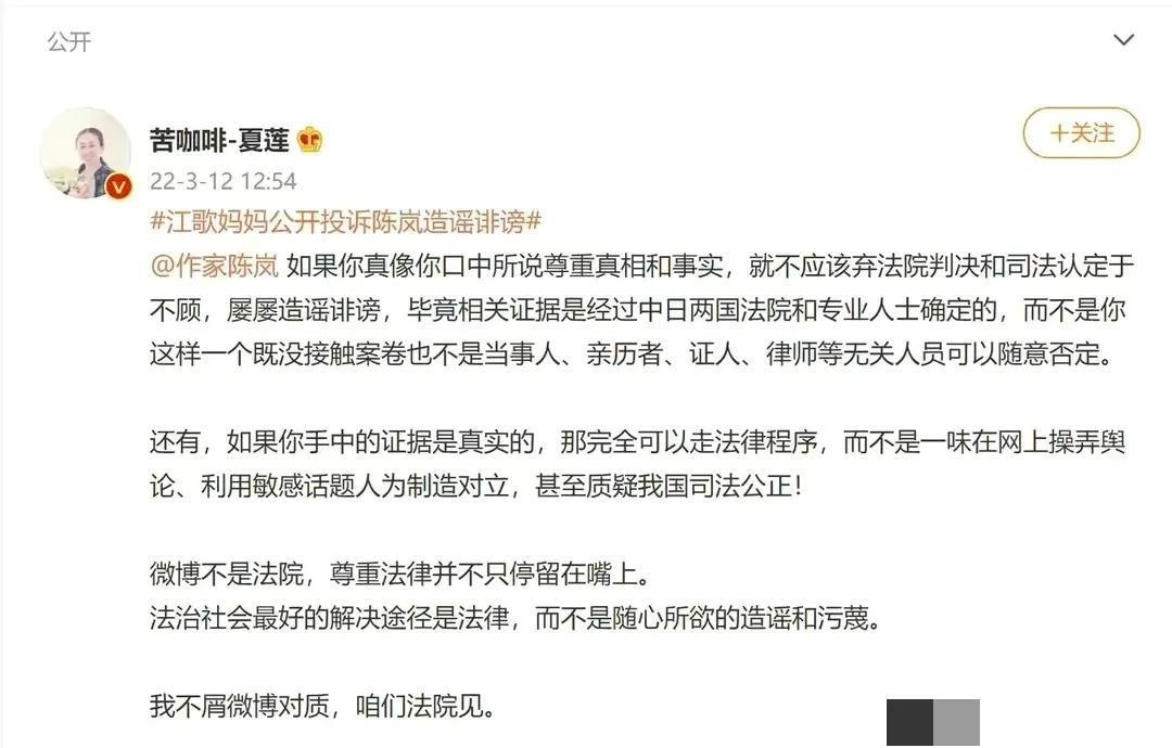 2017年开始带节奏对江歌妈妈网暴,时至今日开始反击
