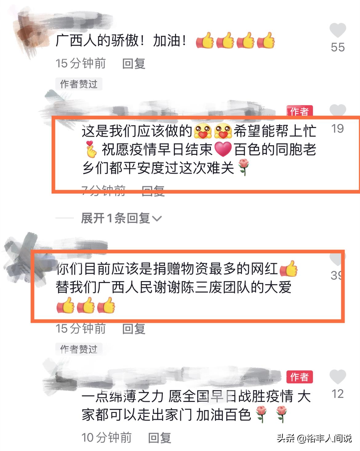 在某平台拥有3000多万粉丝的陈三废团队,虽然自成名以来遭到诸多网友质疑,但本身做得慈善也是非常多。近日,广西百色疫情反复,作为广西的大网红,陈三废团队也是献出了一片爱心。
