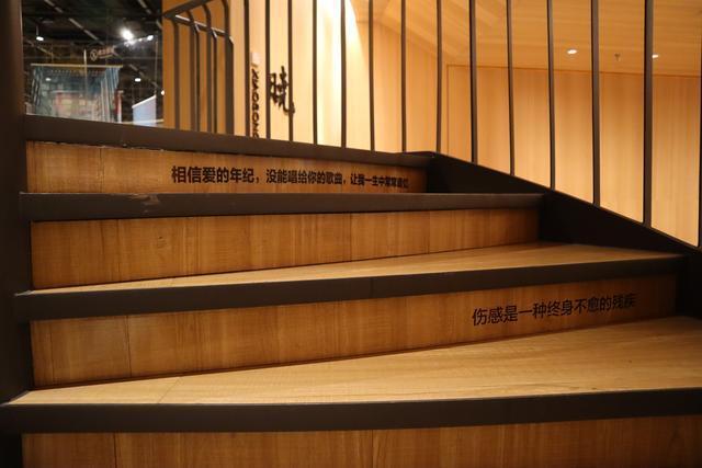 通往2楼的旋转楼梯,上面有很多高晓松的金句,相当文艺。