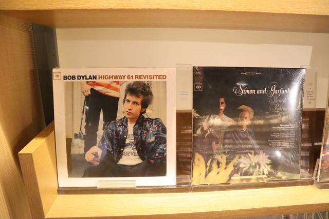 二层是一整面的黑胶唱片墙,外加一个视听区域。黑胶唱片都是高晓松从洛杉矶人肉带回,在试听空间可以找到对应的黑胶唱片来听,戴上耳机静静欣赏音乐。