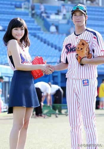 参加棒球开球仪式的川口香奈,一袭无袖连衣裙,棒球服的设计,活力十足,青春洋溢。