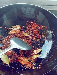 锅中放入少量的油,然后放入生姜,花椒,大料和香叶进行翻炒,炒出香味儿后放入白糖生抽和少量的盐,然后放入一些清水,最后将辣条放入