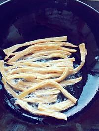 切成你想要的长度,然后放进油锅中炸至两面金黄
