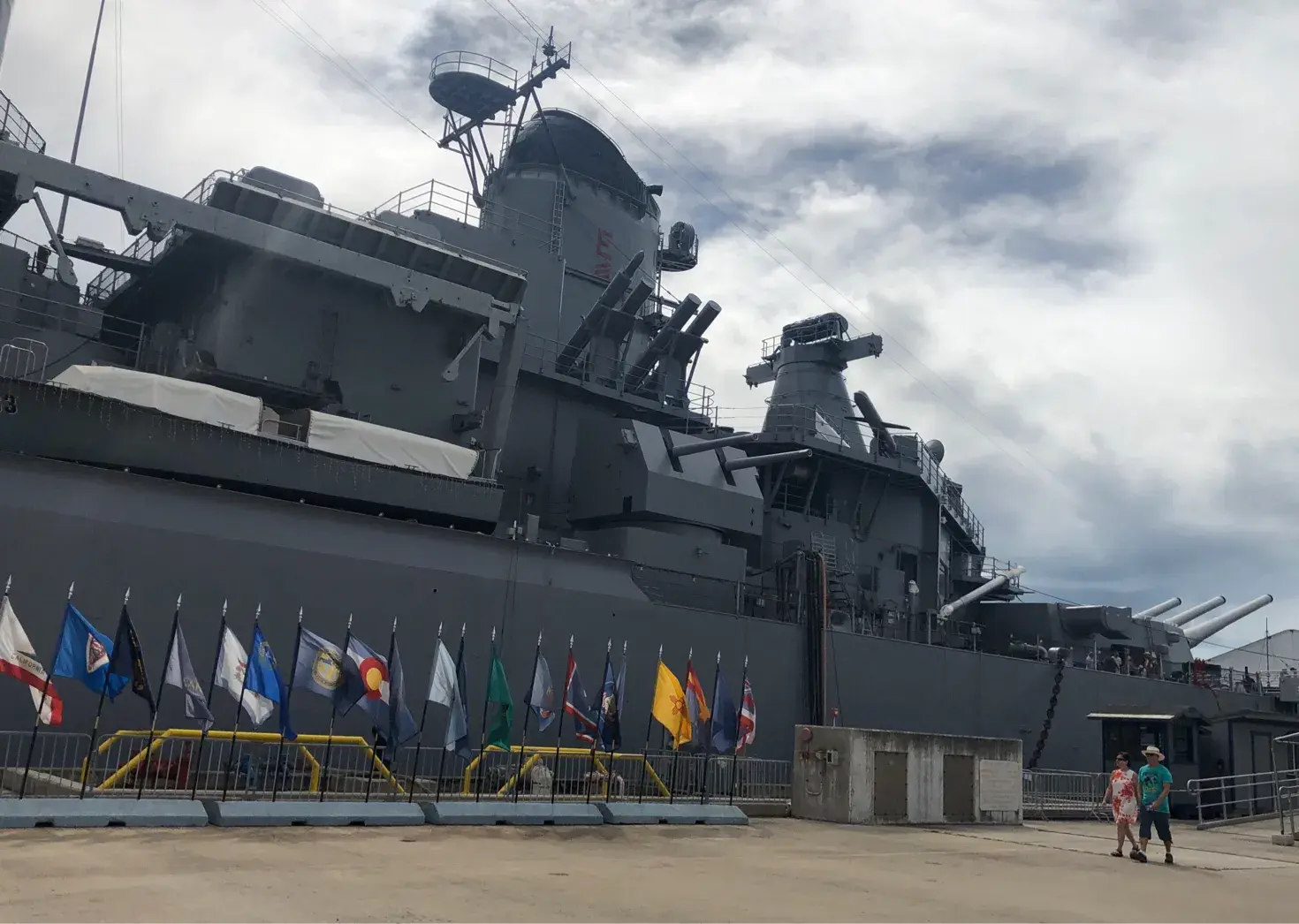 参观密苏里号战列舰纪念馆,一些未知的历史问题便也有了答案。据中文讲解员介绍,时至 1941年12月7日凌晨,从日本六艘航空母舰上起飞的第一攻击波183架飞机,穿云破雾,扑向珍珠港。7时53分,发回“虎、虎、虎”的信号,表示奇袭成功。此后,第二攻击波的168架飞机再次发动攻击。仓促应战的美军损失惨重,8艘战列舰中,4艘被击沉,一艘搁浅,其余都受重创;6艘巡洋舰和3艘驱逐舰被击伤,188架飞机被击毁,数千官兵伤亡。日本只损失了29架飞机和55名飞行员以及几艘袖珍潜艇。