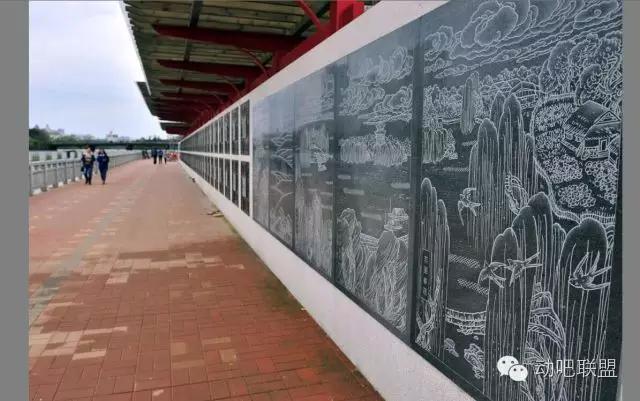 再往前便是抚河故道了。徽派廊桥、文化长墙,刻画着西汉时期灌婴将军在南昌筑城、许真君治水传说、朱元璋定夺南昌城,以及南昌的七门九州十八坡等南昌历史演变过程,老南昌的厚重历史随着轻快的步伐一幕幕而过。