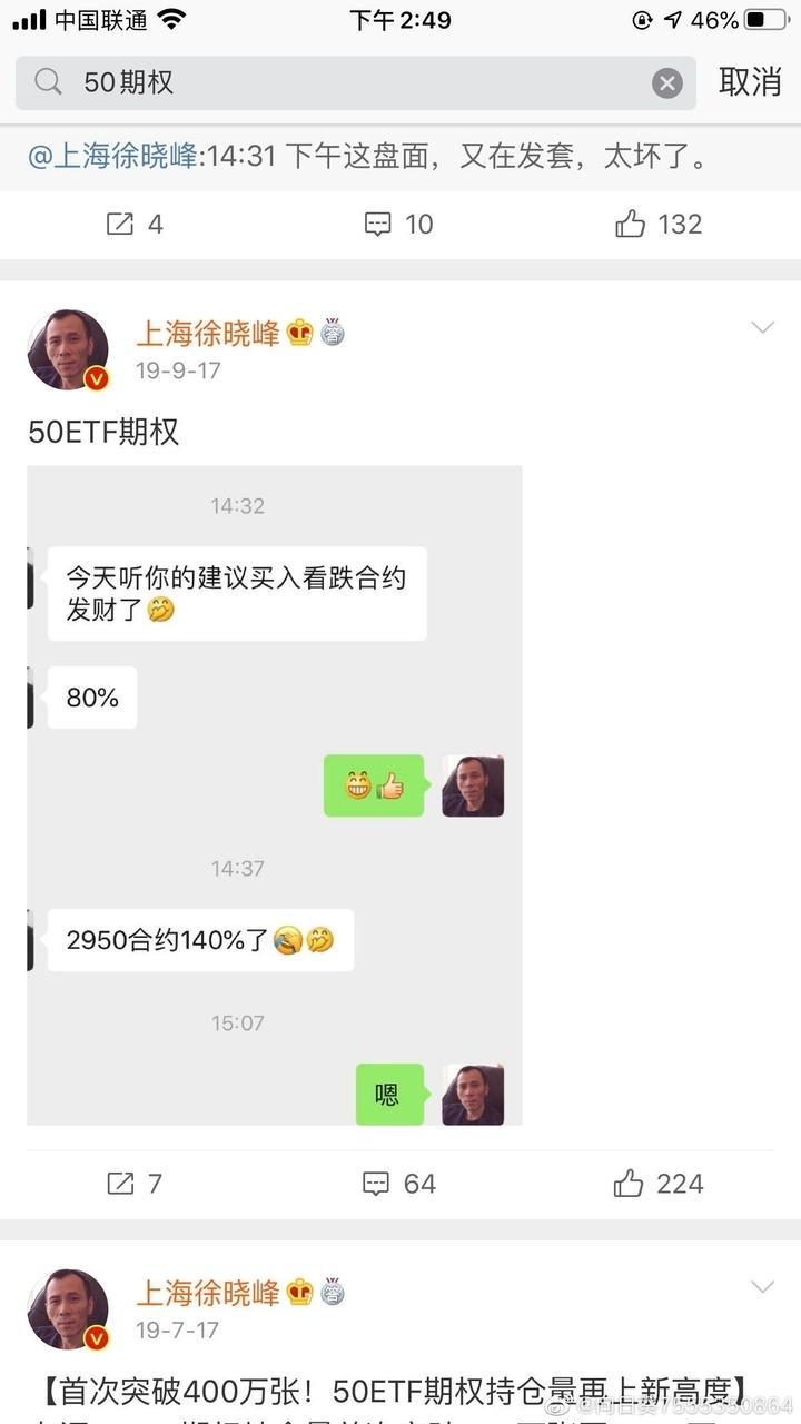 “2019年3月至2020年6月,徐晓峰在他的微博和直播中,宣传他公司和他操作的上证50ETF交易平台,并组建客服团队共同宣传推广非法交易平台。”赵华提供的截图显示,2019年5月、6月、7月、9月,徐晓峰在微博发布了10余次关于50ETF期权广告。