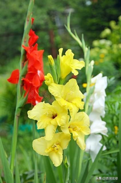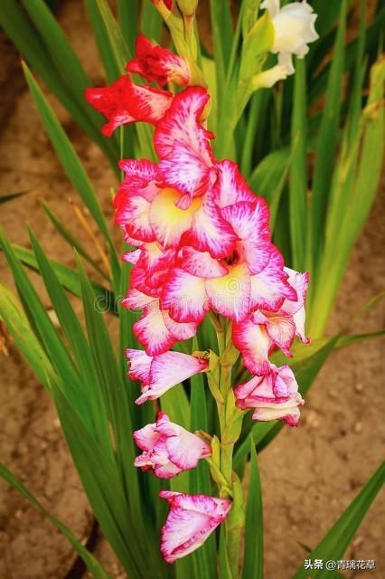 唐菖蒲又叫剑兰,是种球花卉里面的“巨人”—相比于其他球根花卉,它们的花梗可以长到一米以上,无怪乎人们给它起了“剑兰”这个名字。唐菖蒲不仅花梗奇长,花朵也其大,直径一般多在七八公分以上。一枝花梗上一般可结十朵花以上,看起来又美又飒。也正是因为如此,唐菖蒲还是鲜切花市场中为数多不的种球花卉供应品种之一。