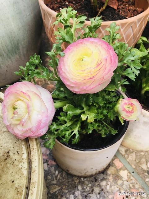 其实这也是花毛茛育苗当然方法,就是通过预先泡水或覆埋湿沙的方式,让其尽快从休眠期中恢复过来。它们在恢复后,将其移到光照充足的地方,保持土壤湿润,用不了多久就能用油绿的“芹菜叶”覆盖住盆面了。一般最迟五月就能看到它们那美美的花儿了。秋后枝叶枯黄后,可以在断水后让它们留在盆土中过冬,或者起出后用吸水纸包裹后放在干燥的保存,以待第二年继续种植。