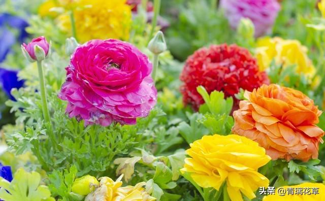 都说牡丹国色天香,但有一种球根花儿开起花来完全不输牡丹,而且有些花色还是它有但牡丹没有的。没错,这种球根花儿就是花毛茛,又叫“芹叶牡丹”,因为,它们的叶子挺像芹菜的。不过,这个“芹菜叶”可是有毒的,花友们可千万别弄错了。
