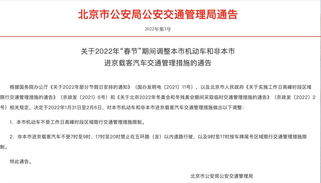 北京春节期间机动车不限行