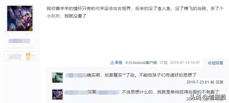 毕竟这是儿时电视机前不断重复的回忆,尽管不再过多关注,姬仍希望《喜羊羊与灰太狼》可以继续走下去。