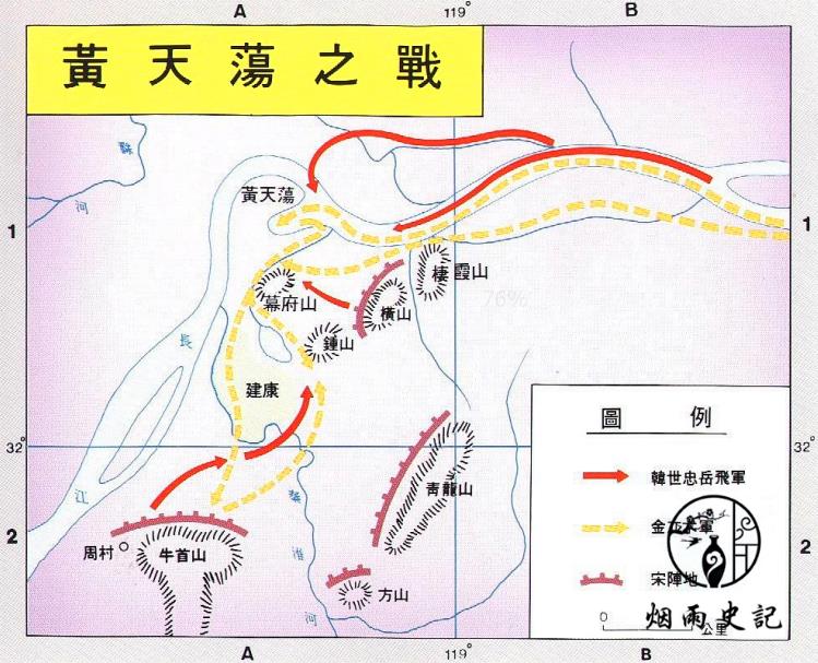 江阴一带,江阴这个地方,地处江尾海头,易守难攻,历来都是长江下游的一道锁链,宋军扼守此处,金军寸进不得,不过金军本身也没有毕其功于一役的计划,遂准备在劫掠一番后返回江北,宋朝名将韩世忠自然也看出了金军的企图,他料定金军十万大军长期远征后勤一定是个大问题,于是他分兵三路,准备伺机攻击金军,截断其退路,《宋史》如此记载"世忠以前军驻青龙镇,中军驻江湾,后军驻海口,俟敌归邀击之。"