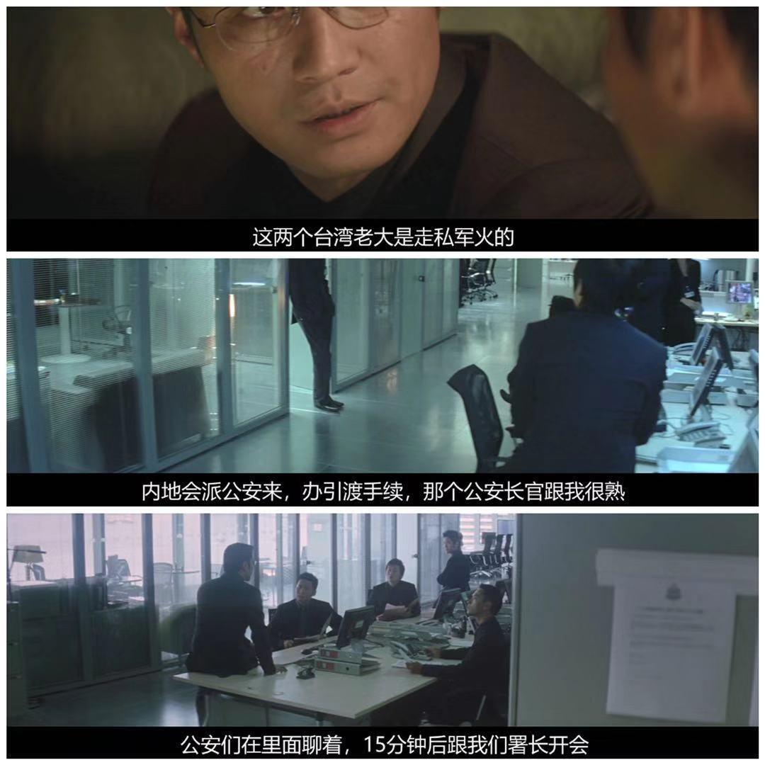 在第三部中的开始,杨锦荣带队去酒吧抓2个台湾军火商打了他们一顿之后,他们在医院休养了一个月,台湾当局没有表态,然后杨锦荣负责把这两个人带到内地。从这里可以看出,两件事都跟内地有关,都跟政治有关,这正是杨锦荣要做的。