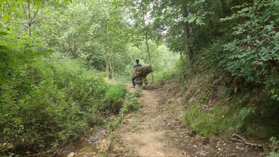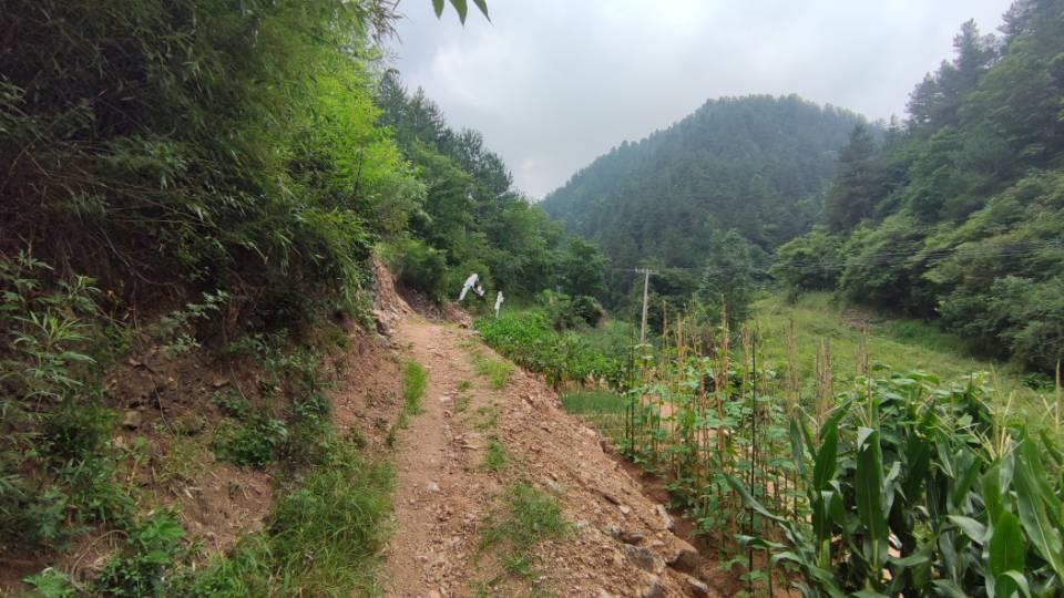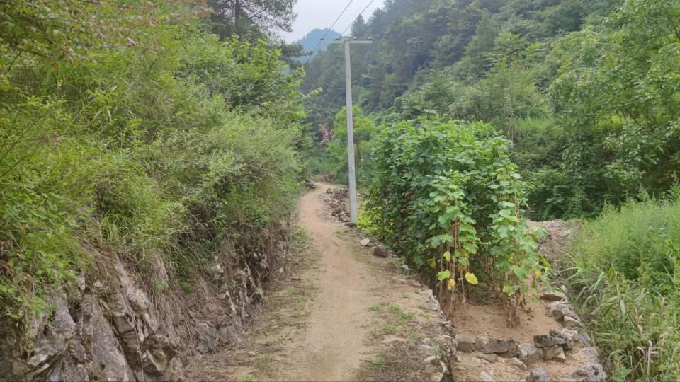 竹耙沟是少数还没通水泥路的山沟,沟口有条一米宽的土路,沿着陡坡,与电线一起伸向沟里。