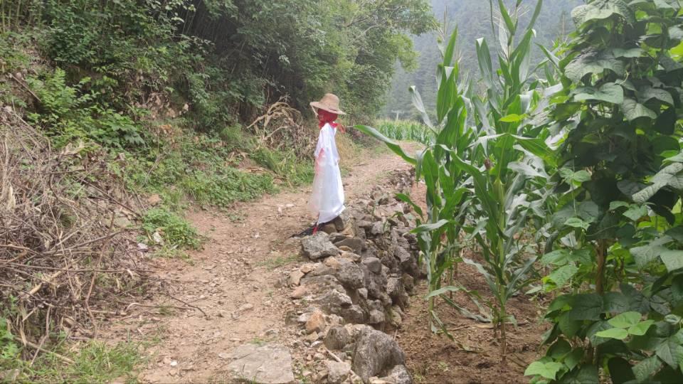 过了菜地,峰回路转,前面玉米地外,突然出现了一个白色的影子,让人心惊肉跳。