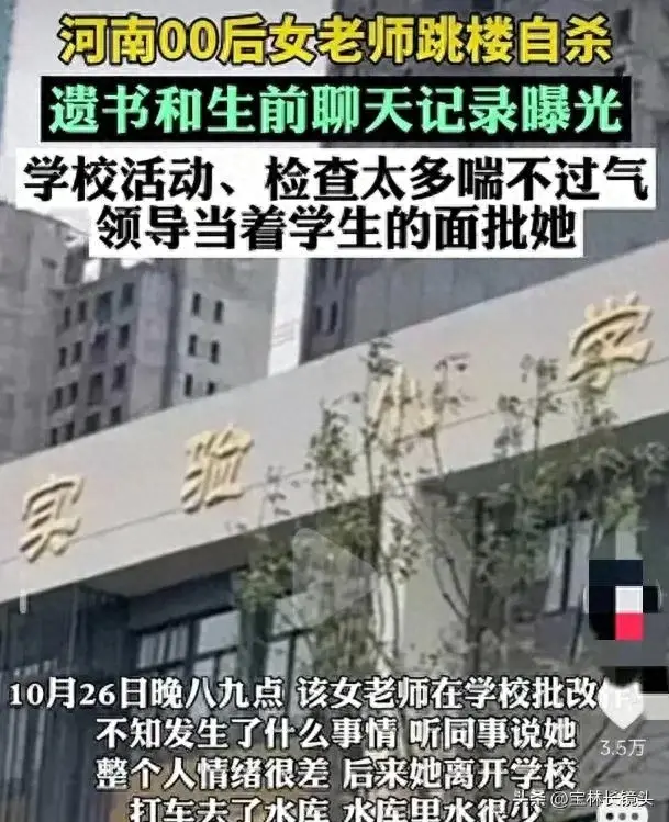 今年10月26日,河南一位23岁小学女教师,因难以忍受学校各类活动和检查过多,不能专心做好教学工作,而跳楼自杀。