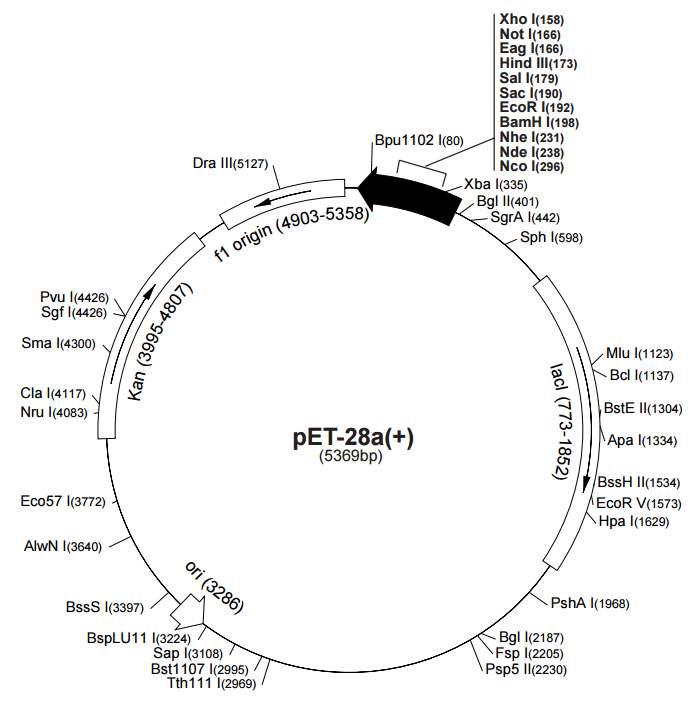 ③具有多种且单一的核酸内切酶识别切割位点,有利于外源基因的拼接插入;