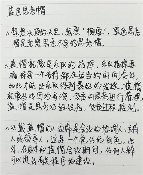 今天开始学习六顶思考帽子第一顶帽子“蓝色思考帽”