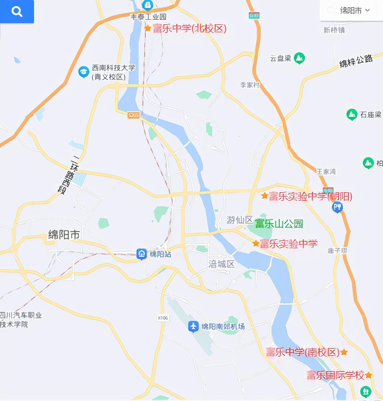 注意:我们平时口口相传的绵阳公立富乐中学指绵阳市主城区富乐山脚下的两个校区以及本部新开设的富乐中学湿地公园校区