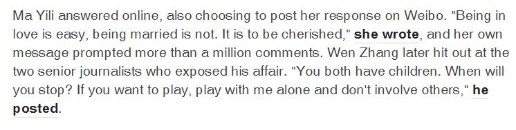 五年前,文章出轨事件就引发了外媒的关注。 英国媒体BBC当时将马伊琍微博留言“恋爱虽易,婚姻不易,且行且珍惜 ”翻译为:"Being in love is easy, being married is not. It is to be cherished."