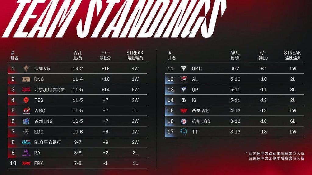 LNG最差第七,但是只要击败OMG就可以至少升到第四,如果RNG不敌OMG的话此时LNG有机会凭借小分来到第三