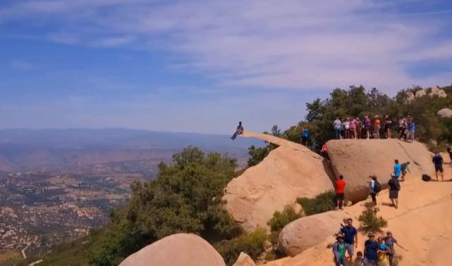 在巨石上突兀的延伸出一块“薄如纸片”的岩石。虽然这片岩石看上去随时会断,但是并不影响无数追求刺激的人想要站在上面。其实,这片岩石距离地面只有三米左右,因为距离地面并不高,所以只要角度合适,任何人都能拍出悬崖的效果。而这些照片,不知道骗了多少人的眼睛。