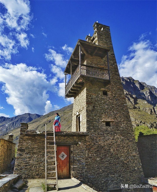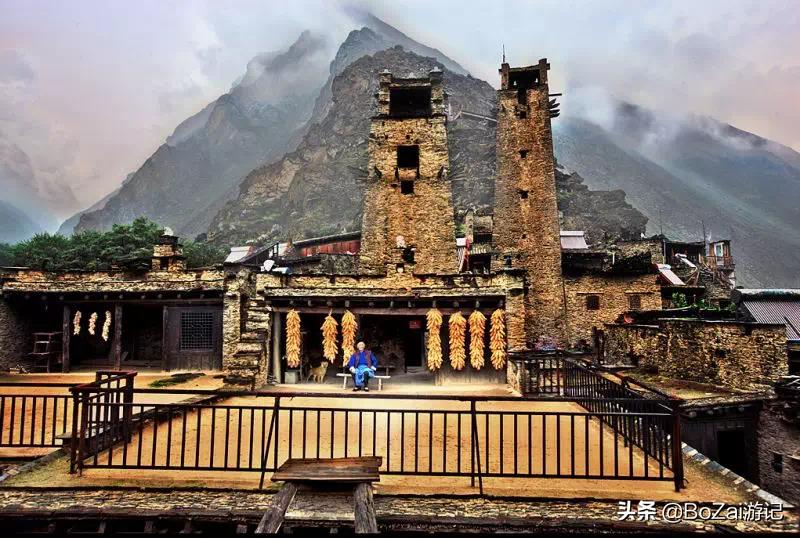 桃坪羌寨位于阿坝理县桃坪乡,坐北朝南,背山面水,布局严密,因其典型的羌族建筑和交错复杂的通道结构而被称为神秘的“东方古堡”。碉楼是整个寨子的标志性建筑,目前仅存两座,雄浑挺拔,屹立于村寨之中。整个寨子以碉楼为中心,筑成了放射状的8个出口,出口连着甬道构成路网,本寨人进退自如,外人如入迷宫。