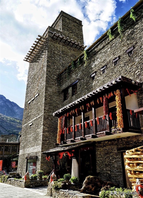 除了漫山遍野的红叶,掩藏在密林深处的藏羌民族村寨是米亚罗风景区的另一大看点。石寨、古堡、碉楼等各具特色的建筑掩映在密林之间,错落有致,屋顶上悬挂着飘扬的经幡。寨子里居住着藏族和羌族民众,至今还保留着许多古老的民俗。