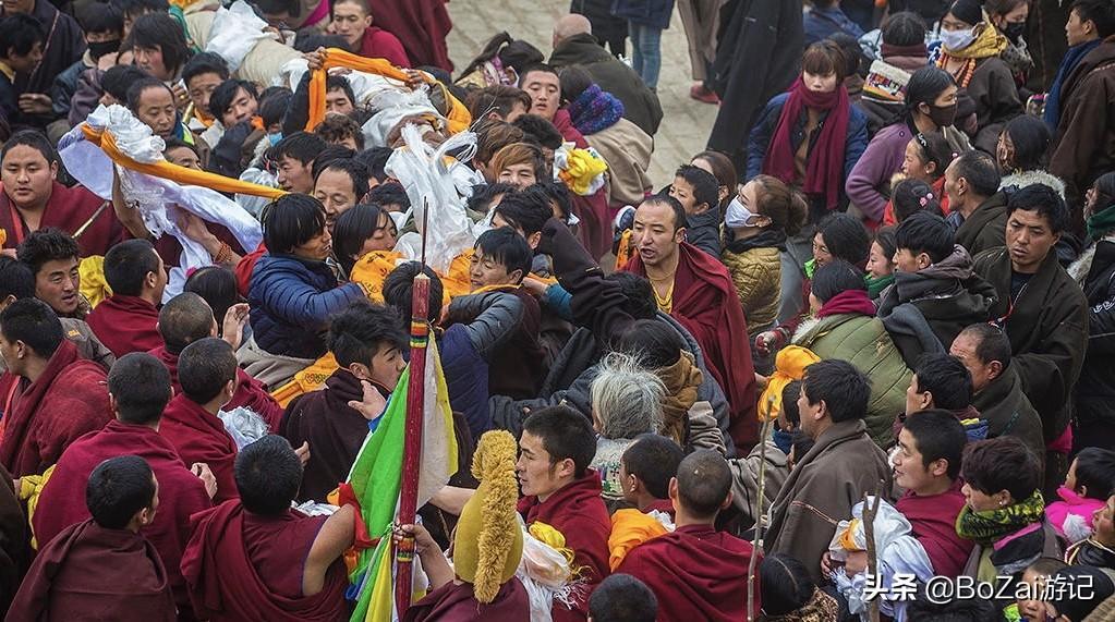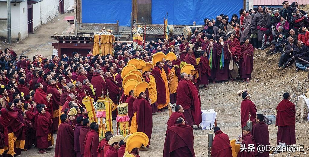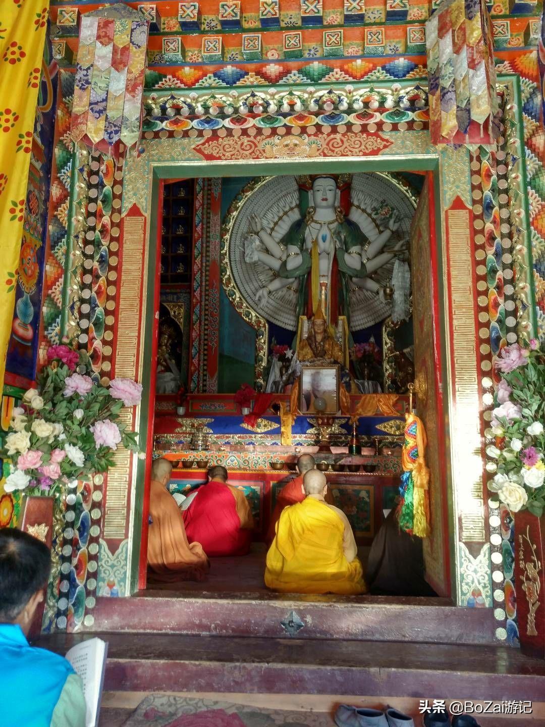 “大藏”,藏文中的意思是“圆满的信心”。因着音译的关系,也曾被喊作“答仓寺”“大泽寺”,当地亦有藏民称之为“茶谷寺”。大藏寺地位极高,仅次于格鲁派祖庭甘丹寺。寺内珍藏乾隆皇帝所赠象牙印章—枚、乾隆所供织锦布料少许、御赐天衣及五佛冠等。殿中壁画亦多,甚至普通的僧舍也都绘满了壁画,记载着历代祖师的生平史传。