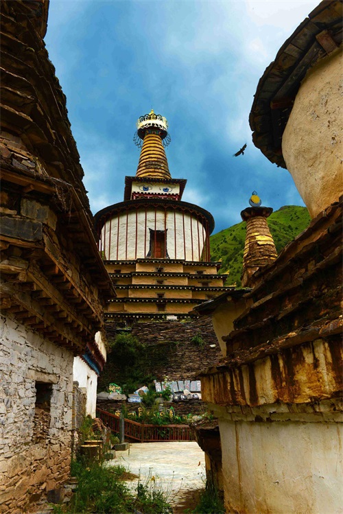 大藏寺位于阿坝马尔康市大藏乡,由嘉绒高僧阿旺札巴大师建于1414年。寺院占地约13万平方米,大藏寺有弥勒殿三座、宗喀巴大师殿、大雄宝殿及护法殿等六座佛殿。此外,还有祈竹楼及堪康楼各一座,为两位法台历代住锡之所。各殿存有圣物及珍贵经书无数,弥勒殿中更供有几十米高的未来佛法像。明清两代,大藏寺深获历代帝皇推崇,规模极其盛大,为川北一带佛法权威与中枢。