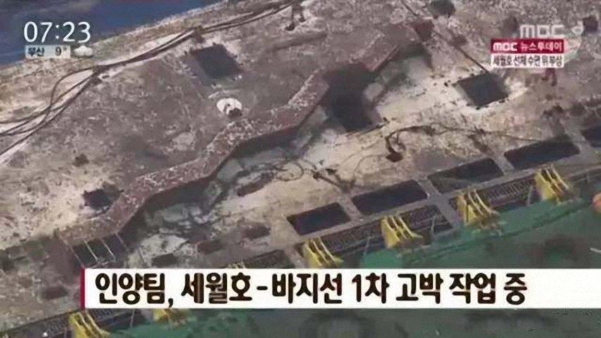 但此时真的为时已晚,仅仅过了10分钟不到,世越号客舱全部被海水吞没,只剩一个船底漂浮在海面上。