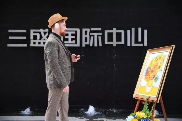 梵高先生正在三盛国际中心的广场上欣赏《向日葵》,原来三盛集团携手雅昌文化集团举办的“听光的指挥”特展,正在三盛国际中心的流动美术馆举行。