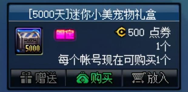 花费500点券可以购买迷你小美宠物礼盒,作用很小,可作为海军时装的搭配宠物。