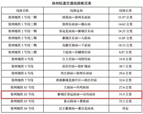 徐州至双沟规划的市域(郊)铁路S2号线,起点为徐州地铁6号线新城区客运站,终点为徐宿淮盐铁路观音站,线路全长31.9公里。