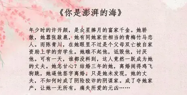 今天为大家推荐旧月安好的5部小说,题材新颖,文笔超棒。《春风也曾笑我》《你是澎湃的海》强烈推荐。