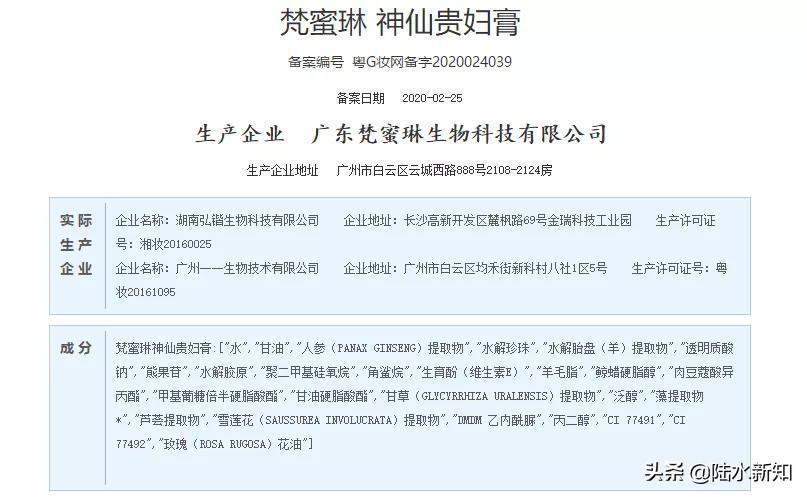 梵蜜琳以“奢侈品”的形象在大火之后大卖,但却被有关媒体曝出梵蜜琳做委托的加工商“广州一一生物技术有限公司”问题不少,而正是因为这家公司的发现,让梵蜜琳在许多网友心中的“贵妇”人设瞬间崩塌,根据这家配料加工厂的历史显示,广州一一生物技术有限公司在2018年前是叫广州市黛芬化妆品有限公司,曾经因为各种卫生不达标问题被国家药品监管局责令停业整改过,后来整改后改名。