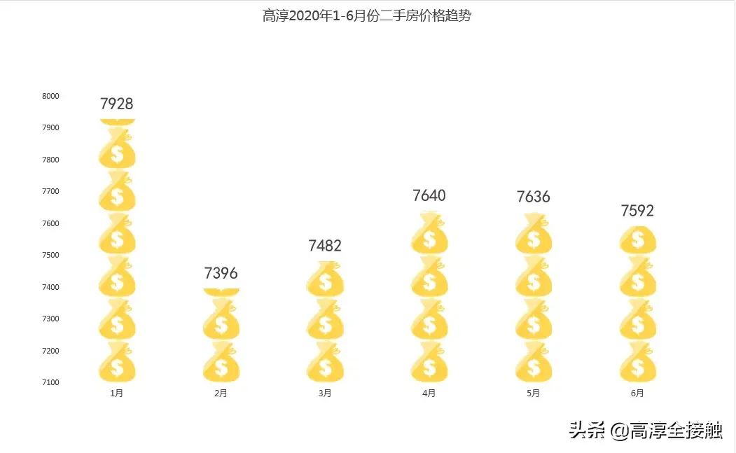 高淳今年上半年的二手房价格巅峰是今年的1月份的7928元/㎡,2月份因为疫情影响迅速下跌至7396元/㎡,此后的3-6月,高淳的二手房价格整体趋于平稳,基本稳定在7600元/㎡左右。