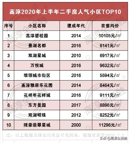 根据贝壳平台的数据显示,截止到2020年7月2日,高淳地区二手房人气小区榜TOP10的为以下10个小区。