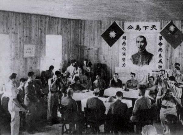 日军投降仪式在孙中山画像前进行