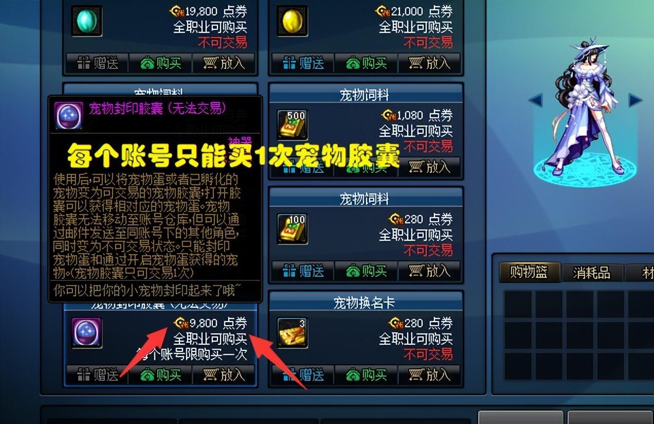 首先说一下原理,商城购买的“宠物封印胶囊”,原本只能封印迷你系列等极少部分宠物,而不知为何,最近可以封印许多绝版老宠物了,比如以往的部分新春宠物都可以封印了,如果大家感兴趣的话,可以在拍卖行搜索“宠物胶囊”。